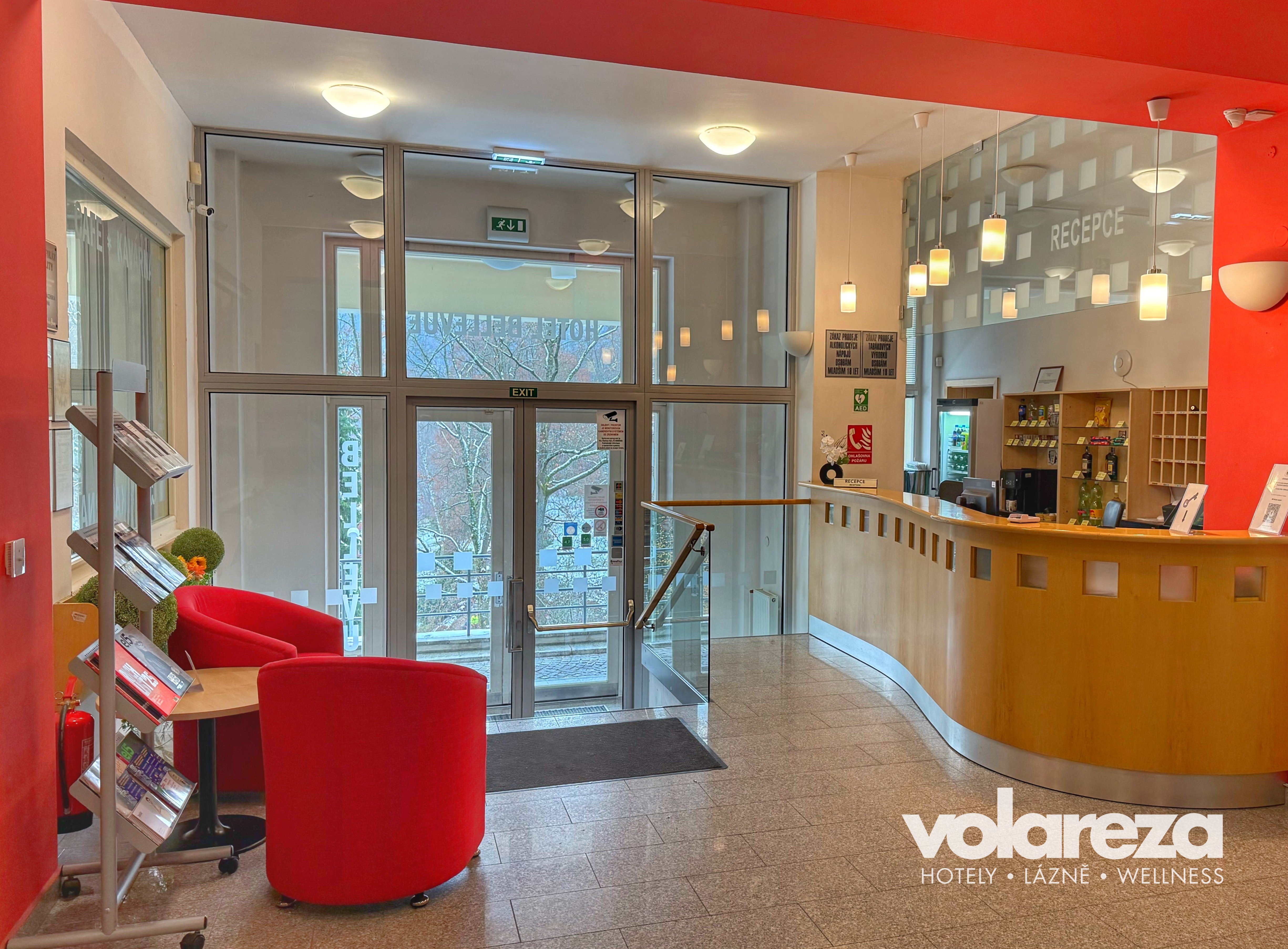 Hotel je od lázeňského centra Karlových Varů vzdálen cca 20 minut pěší chůze. Můžete také využít autobusového spojení, zastávka busu je přímo u hotelu. Pobytem v hotelu Bellevue se Vám nabízí ojedinělá možnost navštívit světoznámé lázně v každém ročním období. Lázeňské město Karlovy Vary a blízké okolí nabízí pro Vaši návštěvu množství zajímavých akcí a služeb. V hotelu je vlastní wellness centrum s nabídkou služeb pro Vaši relaxaci.