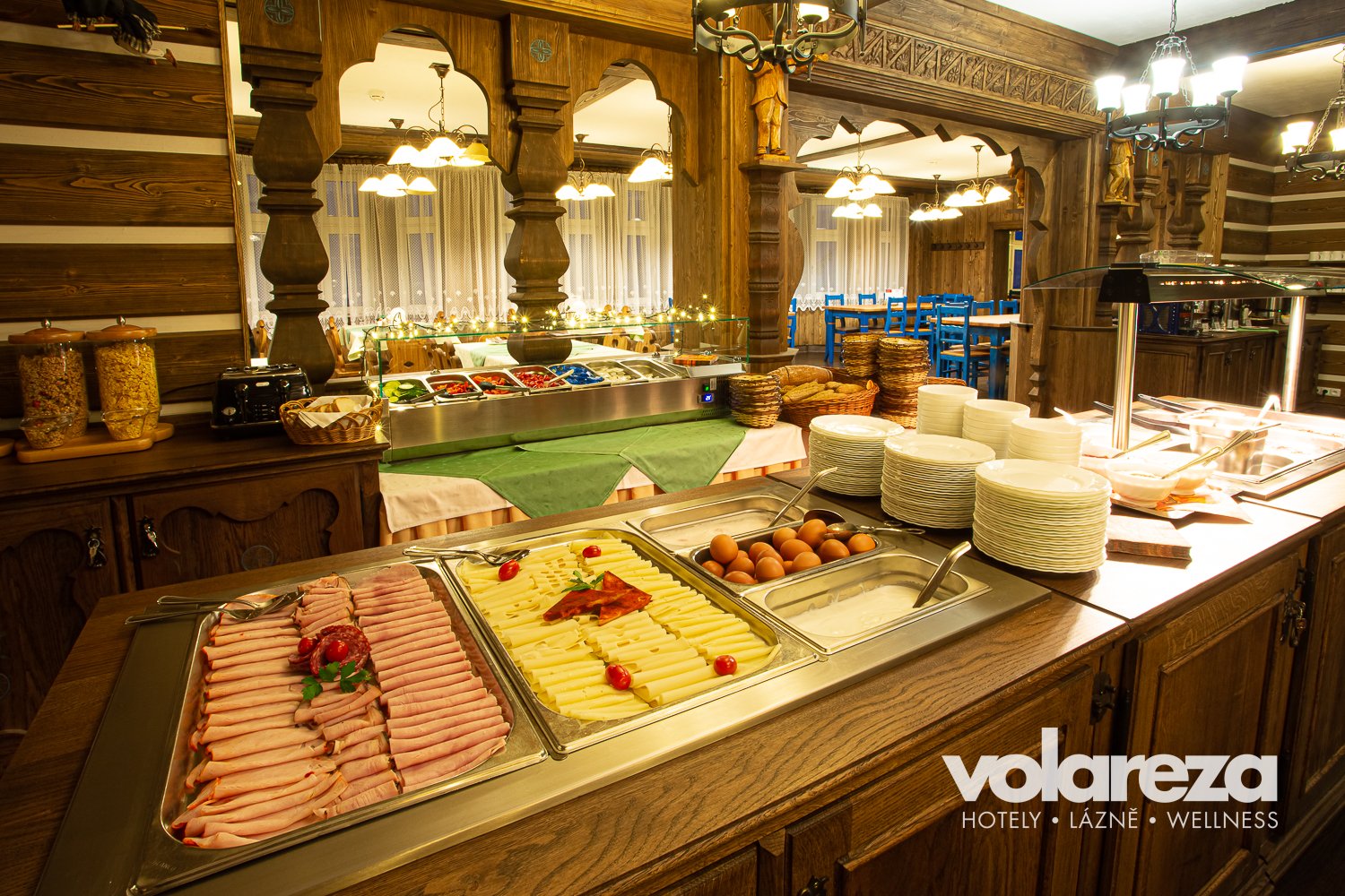 - Przyjemną atmosferę z widokiem na dolinę Bílégo Labe, cała restauracja dla niepalących