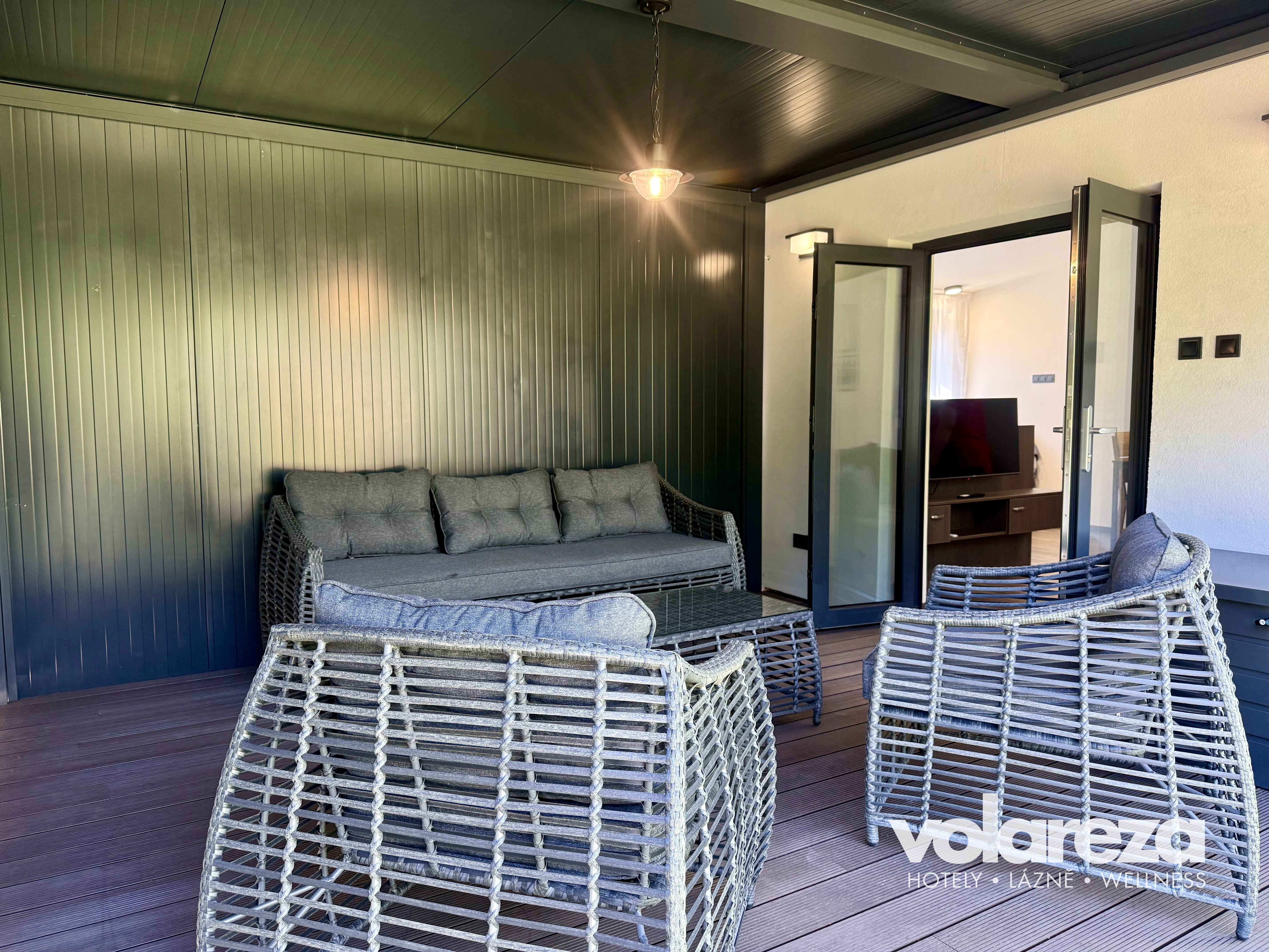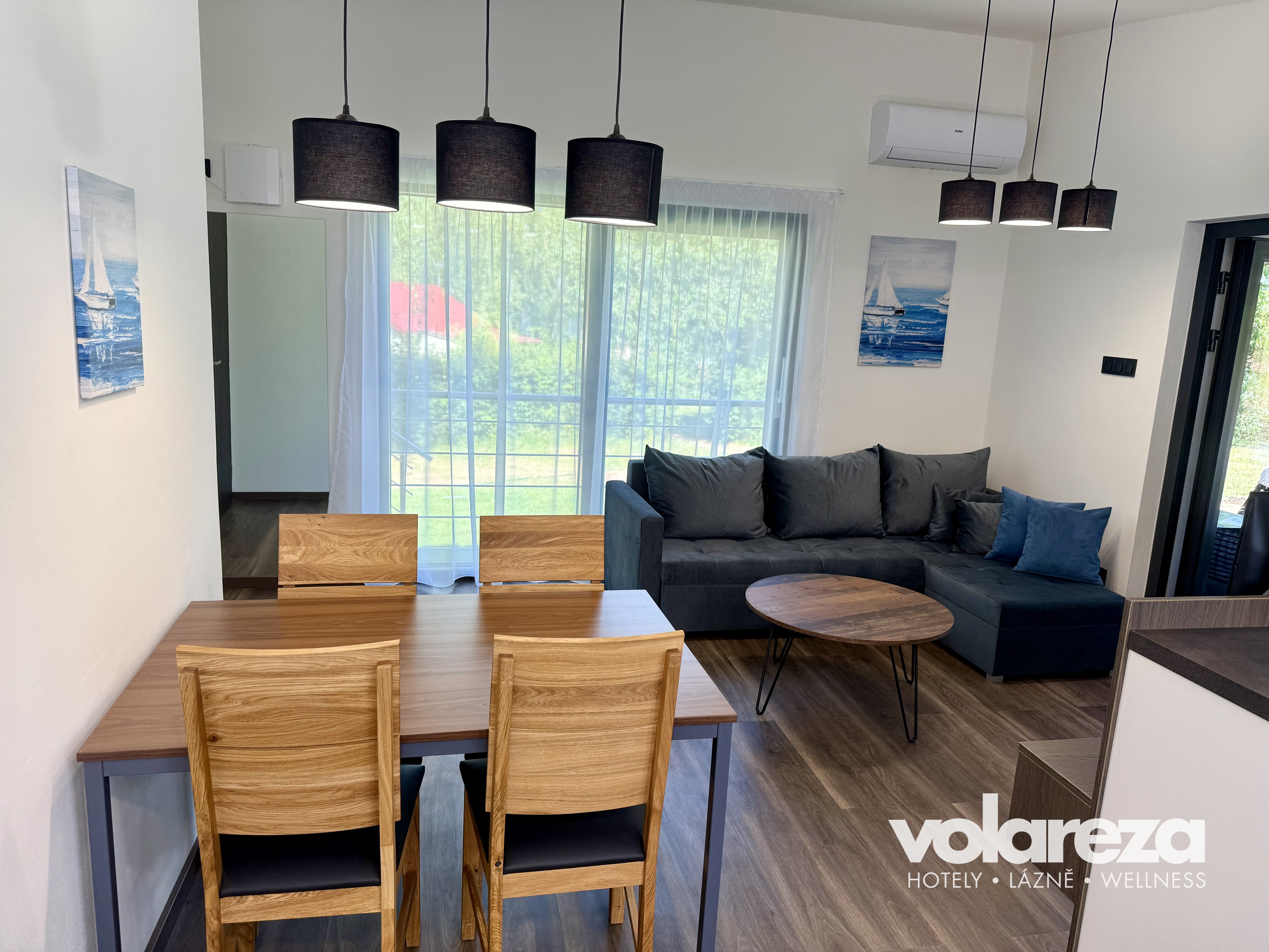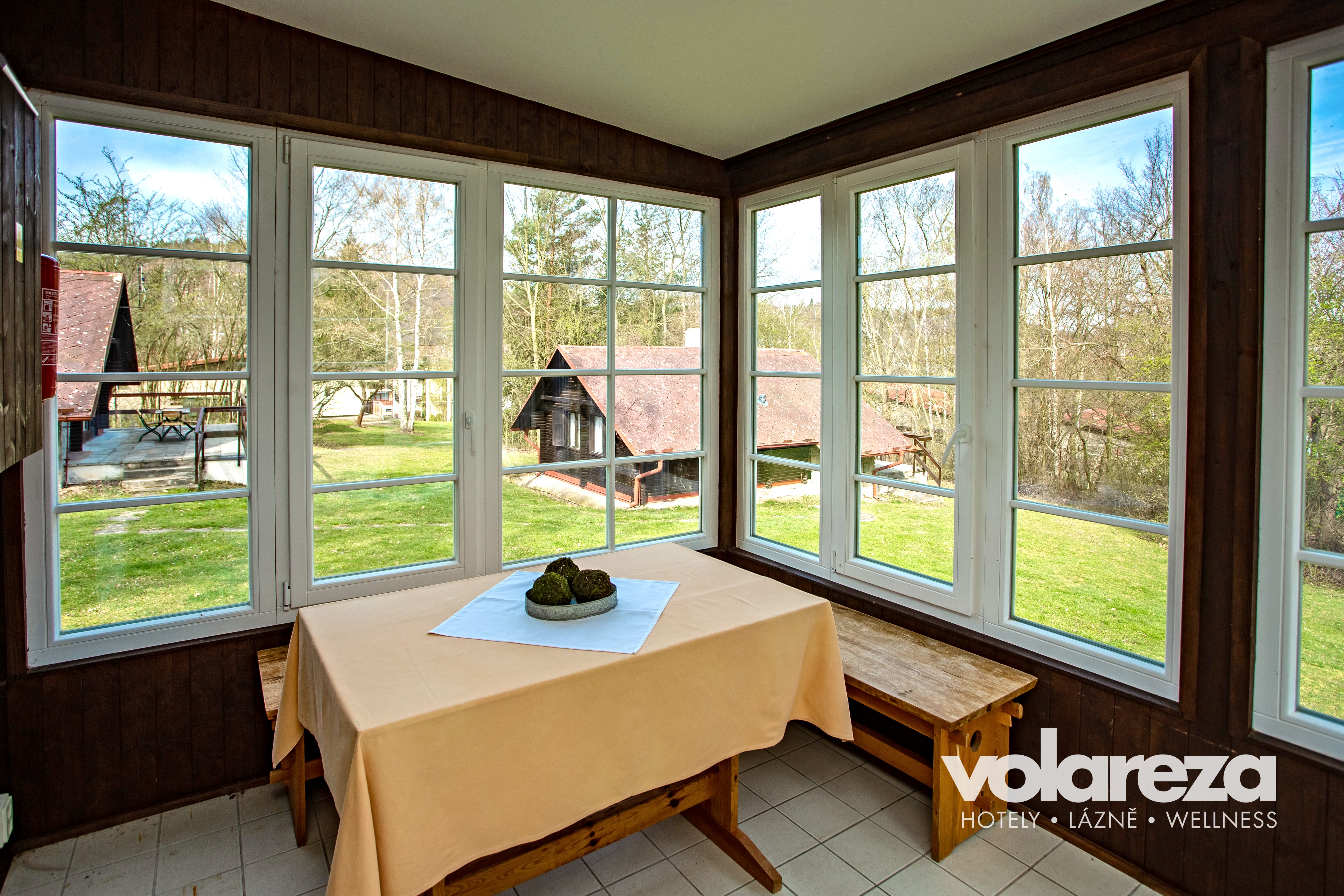 Chaty se nacházejí v uzavřeném areálu s maximální vzdáleností 300 m od hotelu a hosté tak mohou využívat bohaté wellness a sportovní zázemí zařízení včetně jeho gastro služeb. Ani ošklivého počasí se při pobytu v chatách bát nemusíte, chatky jsou vytápěny přímotopy. Nedílnou součástí ceny ubytování v chatkách je snídaně formou teplého a studeného bufetu a v případě zakoupení týdenního pobytu v hlavní sezoně máte rovněž v ceně vstup do hotelového aquacentra (2x za pobyt). Samozřejmostí je ložní prádlo a ručníky, které vyměňujeme 2x za pobyt. Parkování vozidla je možné u chaty nebo na centrální odstavné ploše zařízení.